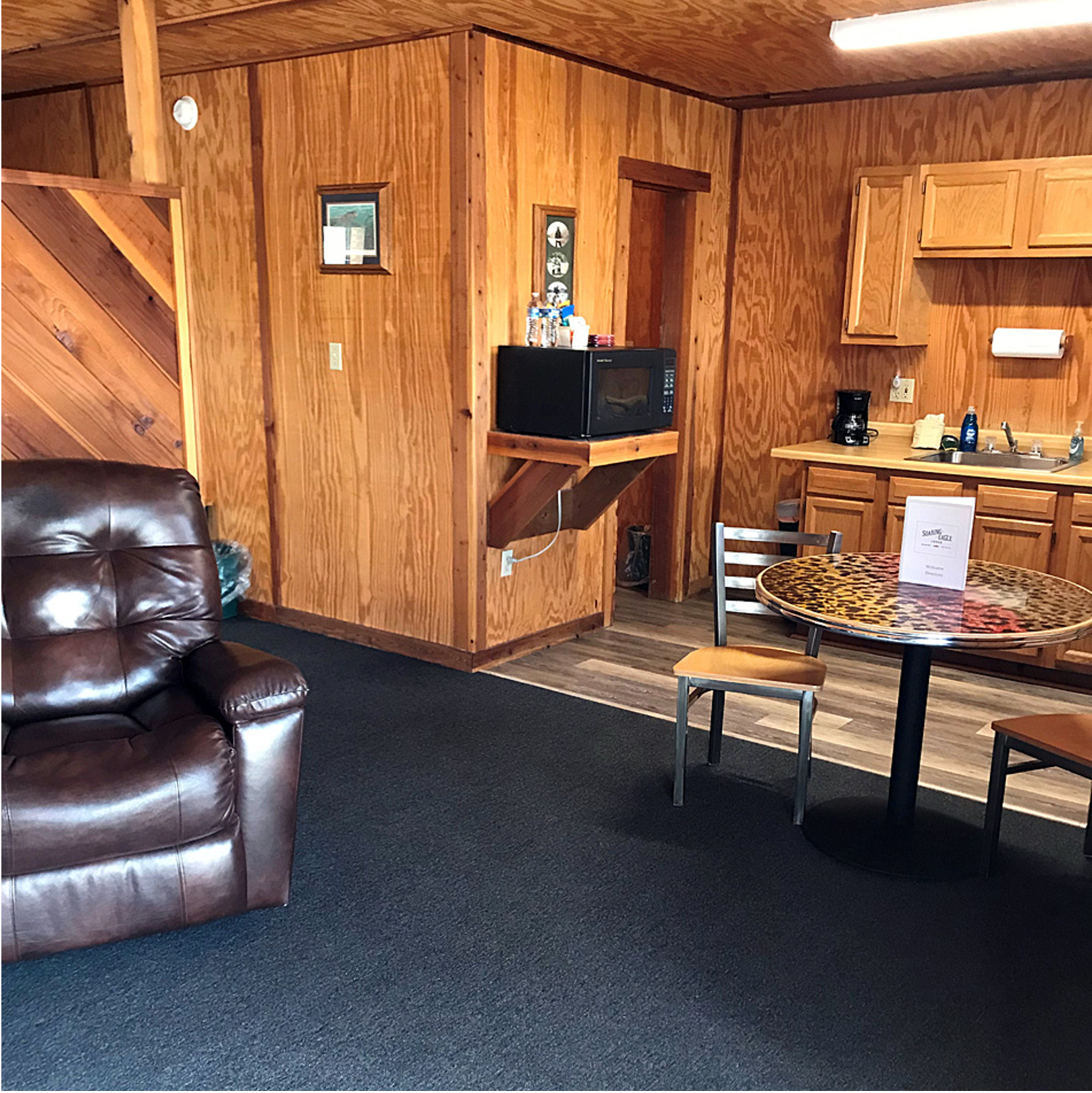 Beyond the river, the lodge offers plenty of ways to unwind. Enjoy friendly competition in the hospitality room with pool, shuffleboard, or darts, or settle in to watch your favorite game on the big-screen TV. Step outside for a round of horseshoes, or relax on the spacious deck and take in the peaceful sound of the river as the sun dips below the trees.