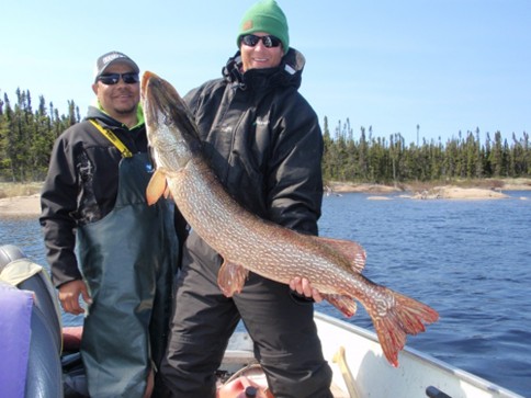 Fish Nation’s research indicates this operation is among the very best in the world for big pike and lots of them! This lodge is situated on the 9th largest lake in Canada, with an area of over 2,500 square miles. You will be fishing a heavily-indented shoreline with over 5,000 small islands and many shallow and some deep bays. You can even sight fish the shallows and pick your fish! Or just cast your way along. Make sure to bring 12” to 15” wire leaders, even if fly fishing. The lake eventually drains into the Churchill River and on to Hudson Bay. One part of the lake is over 700 feet deep, due to a meteorite hitting it some 140 million years ago.